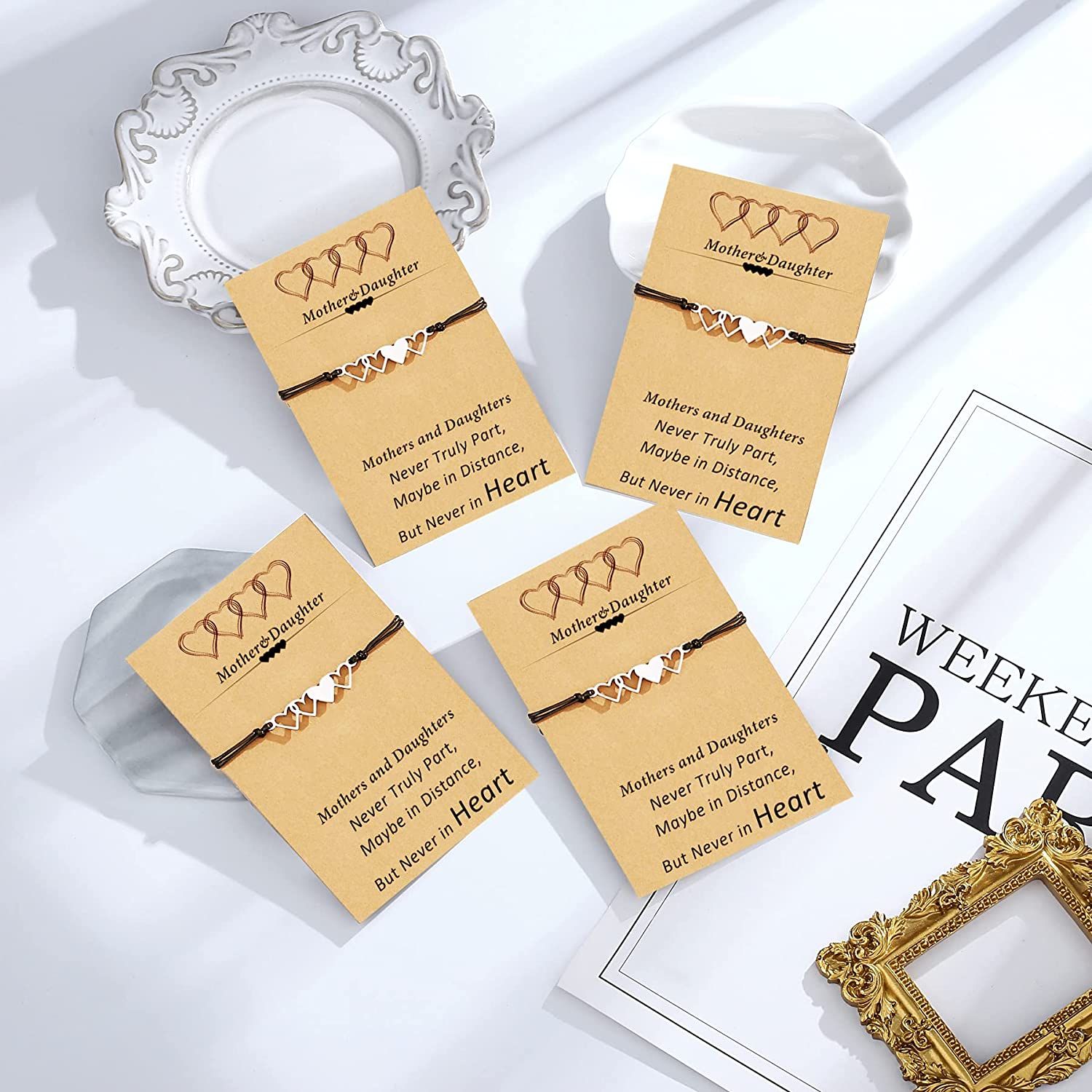Mothers Day Gifts - Heart bracelet on card meaning 'Never Truly Part,Maybe in Distance,But Never in Heart'. All daughters love their mom, but sometimes we just forget to say it . this bracelets as a sweet and meaningful gift to express the love between each other.